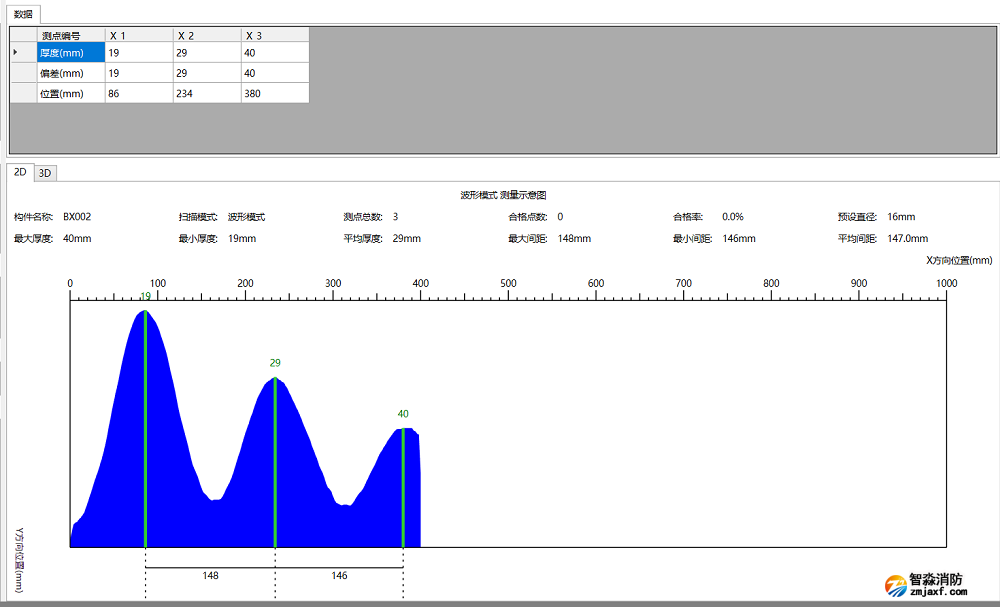 厚度模式、網格模式、剖面模式、波形模式、 JGJ檢測 |