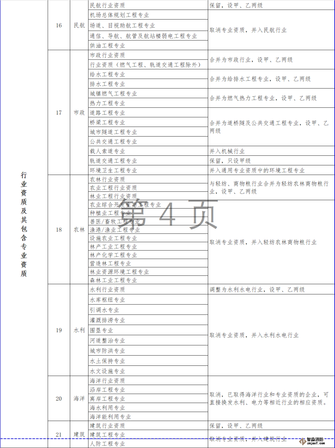 取消海洋行業及專業資質,相關企業可以換發相近行業資質。整合原化工石化醫藥、石油天然氣、電力、市政行業中的專業資質,資質等級壓減為甲、乙兩級,原丙級資質并入相應專業乙級資質;取消其他行業的專業資質,并入相應行業資質,原甲、乙級專業資質并入相應等級的行業資質,原丙級專業資質并入乙級行業資質。