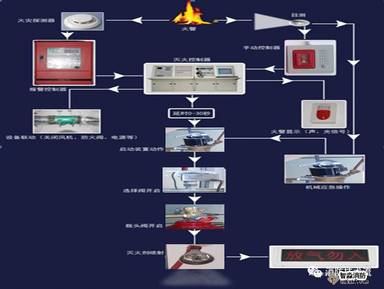 (9)信號反饋裝置:將滅火劑釋放的壓力或流量信號轉成電信號,并反饋到控制中心。