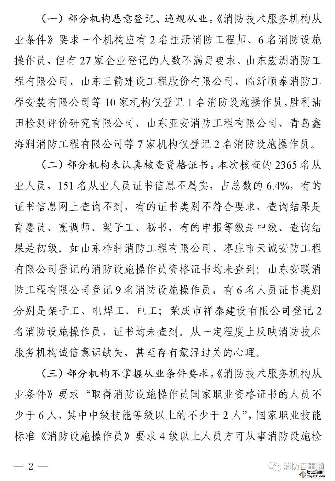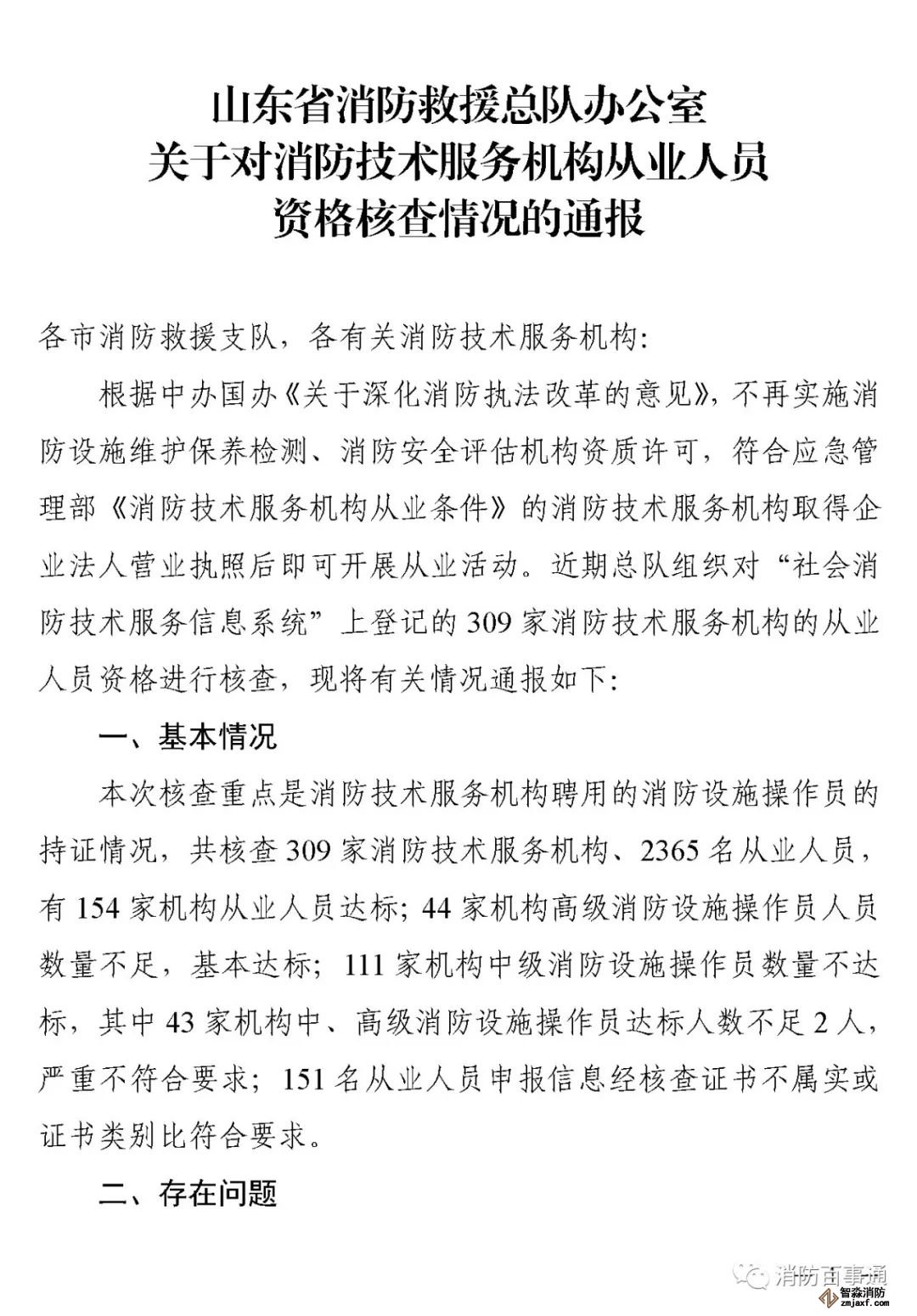 近日,山東省消防救援總隊辦公室通報了對消防技術服務機構從業人員資格核查情況: