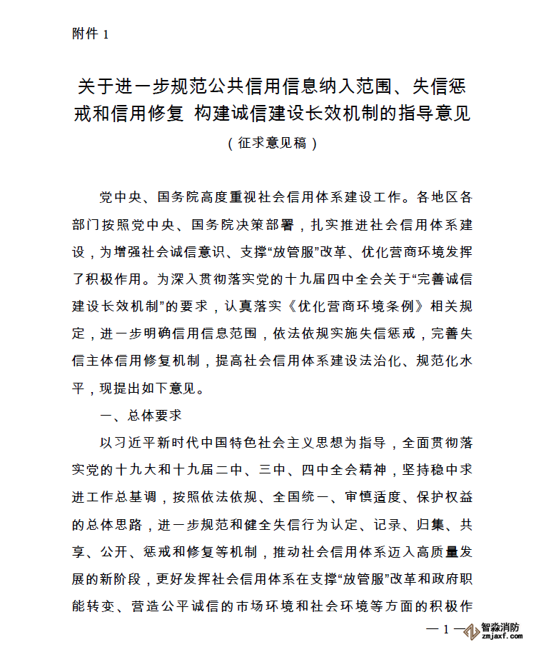 附件:1. 關(guān)于進(jìn)一步規(guī)范公共信用信息納入范圍、失信懲戒和信用修復(fù) 構(gòu)建誠(chéng)信建設(shè)長(zhǎng)效機(jī)制的指導(dǎo)意見(jiàn)(征求意見(jiàn)稿)