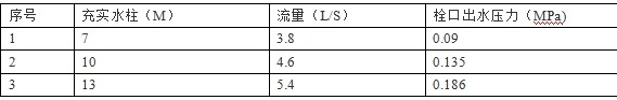 消火栓栓口連接水帶連接試水裝置,打開消火栓閥門放水,此時(shí)水槍充實(shí)水柱與試水裝置上的壓力表顯示的栓口出水壓力對(duì)應(yīng)關(guān)系見附表2.