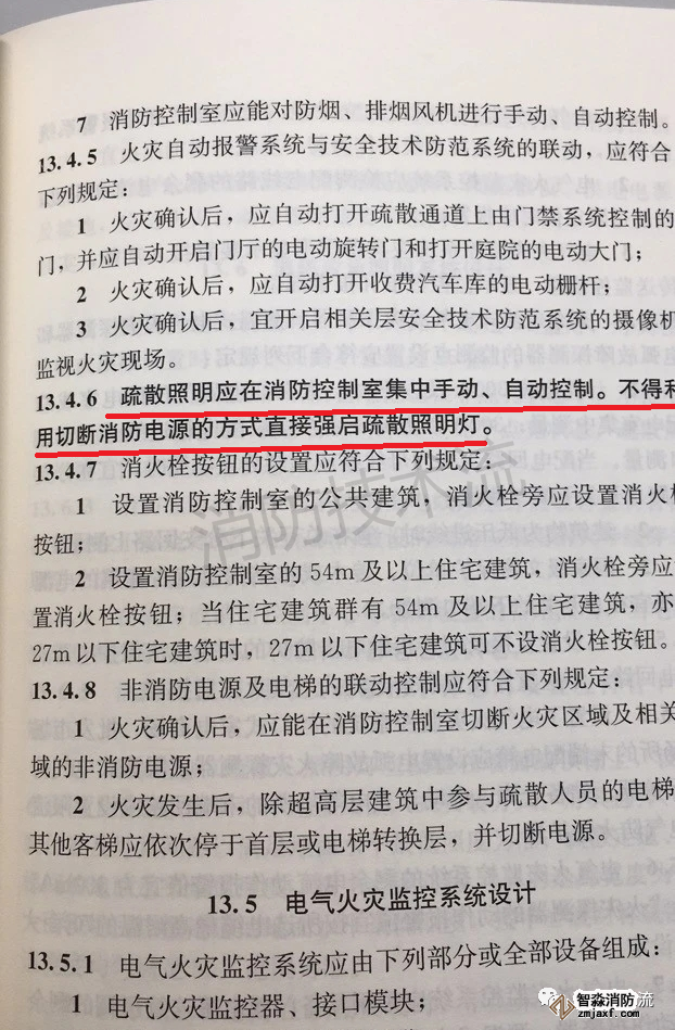 其中第13.4.6條對應急疏散照明的控制方式提出了明確的規定: